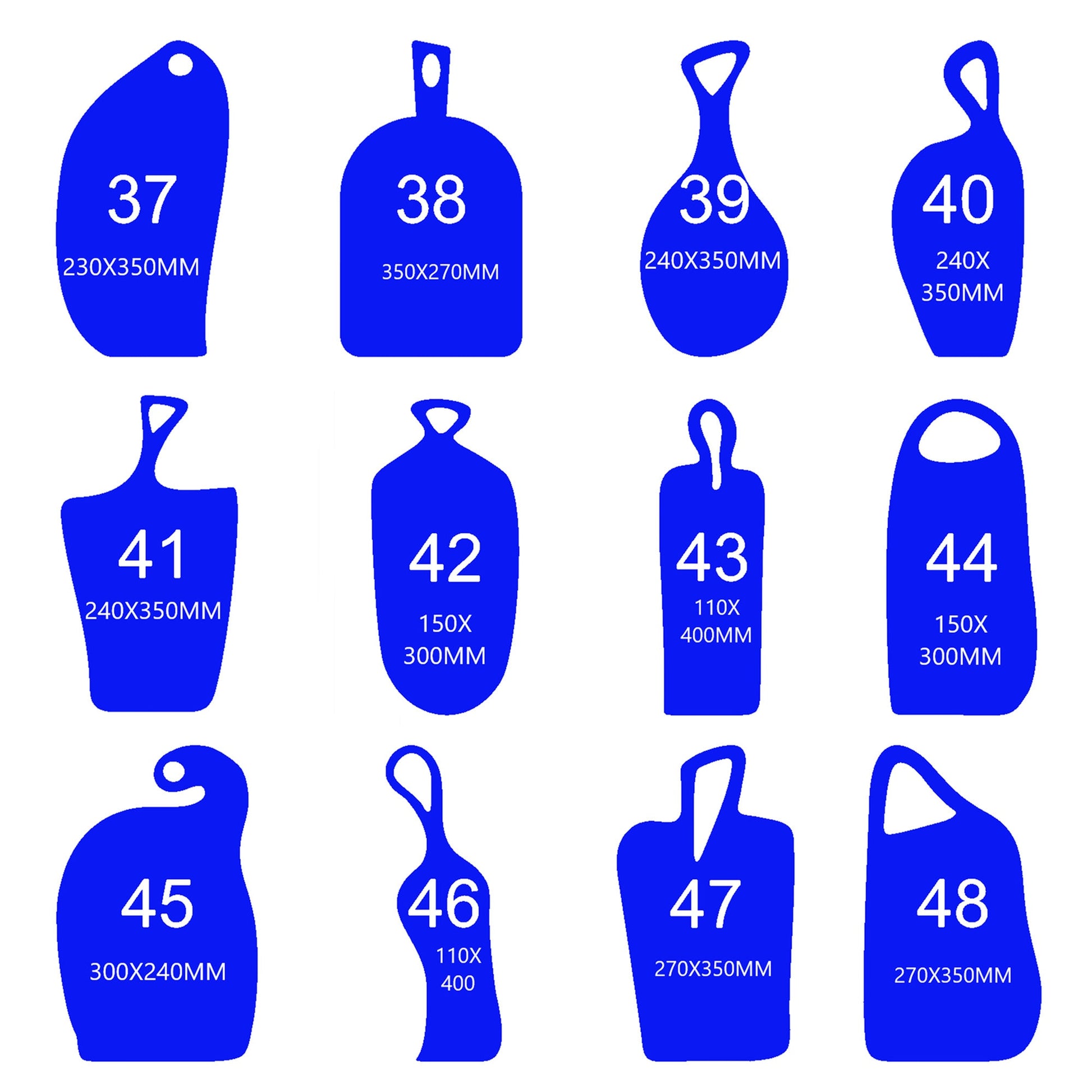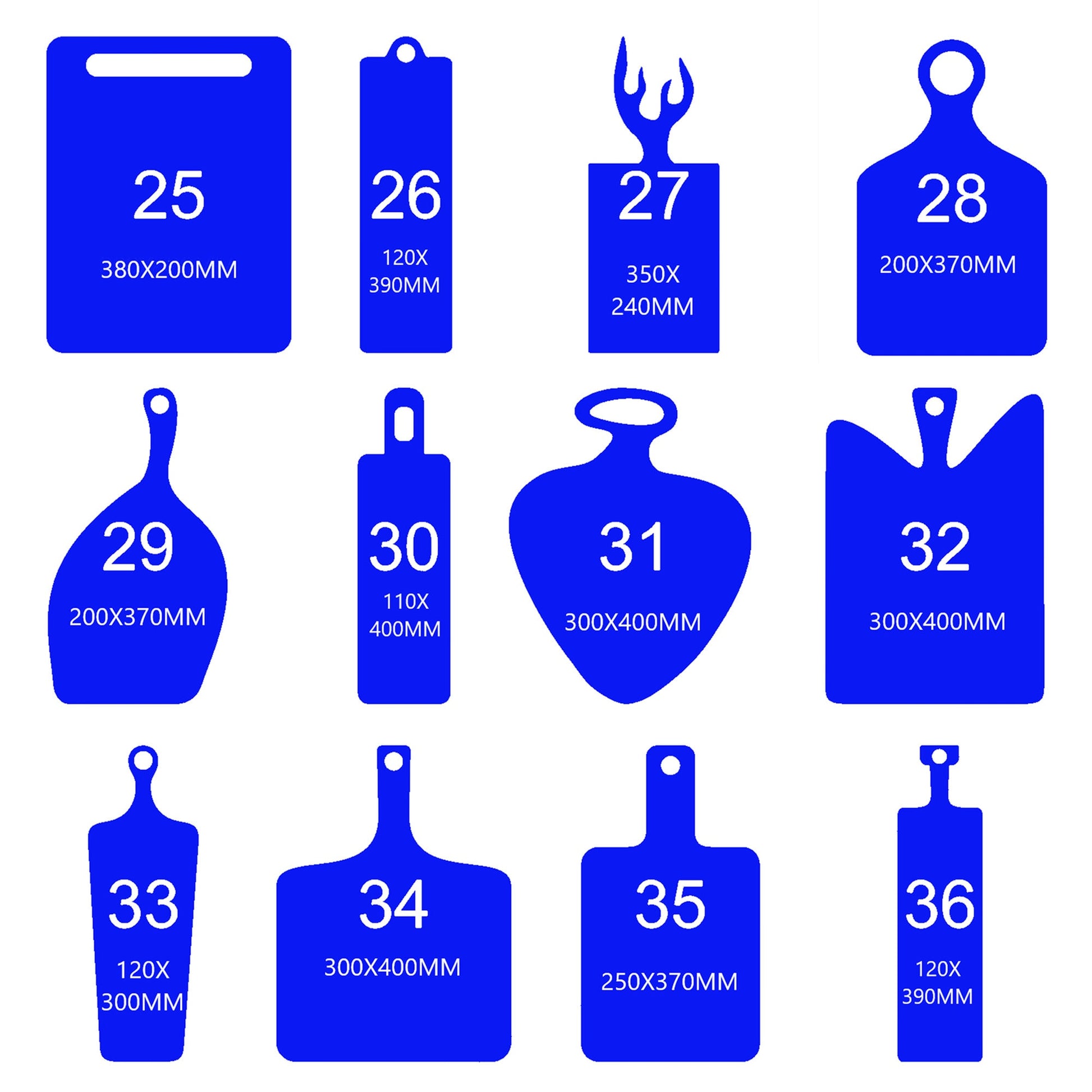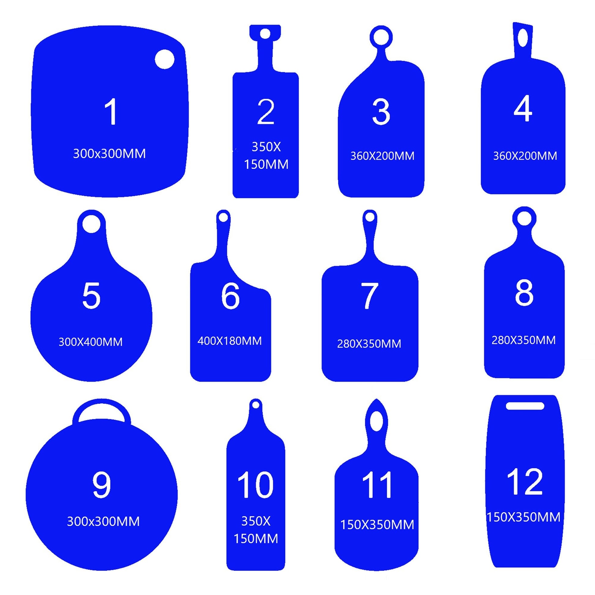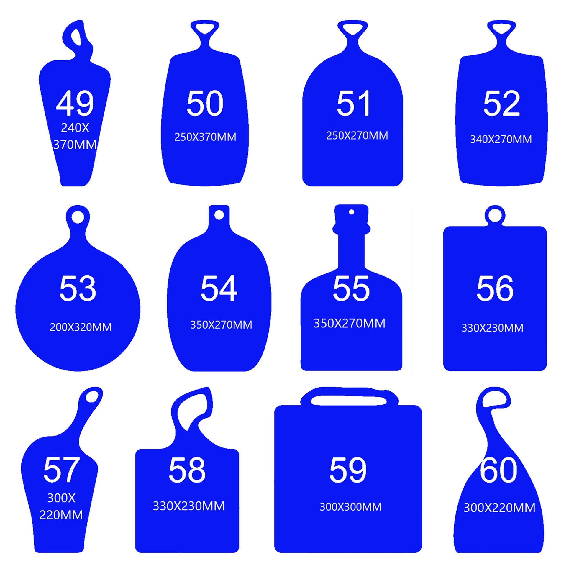 Choose from 120 chopping board / serving board Perspex reusable router templates.