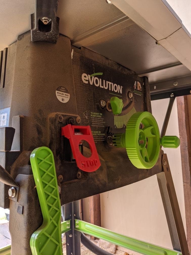 This 3D printed part improves the safety of your machine making it quicker and easier to stop your saw. Stop your saw without taking your eyes off the work piece.