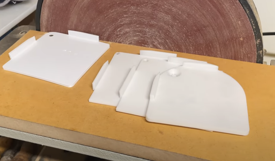 The sanding jig allows wood workers to make repeatable round overs at your bench top disk sander. It can be made to the size you need for your project. A very common use is rounding over the corners of the base or lid that is fitted to small desktop boxes when the trench holding these has been cut on the router table with a trenching bit with a bearing on top, a technique regularly demonstrated and recommended on the Gifkins Dovetail YouTube channel. The 11mm jig is perfect for such purposes.